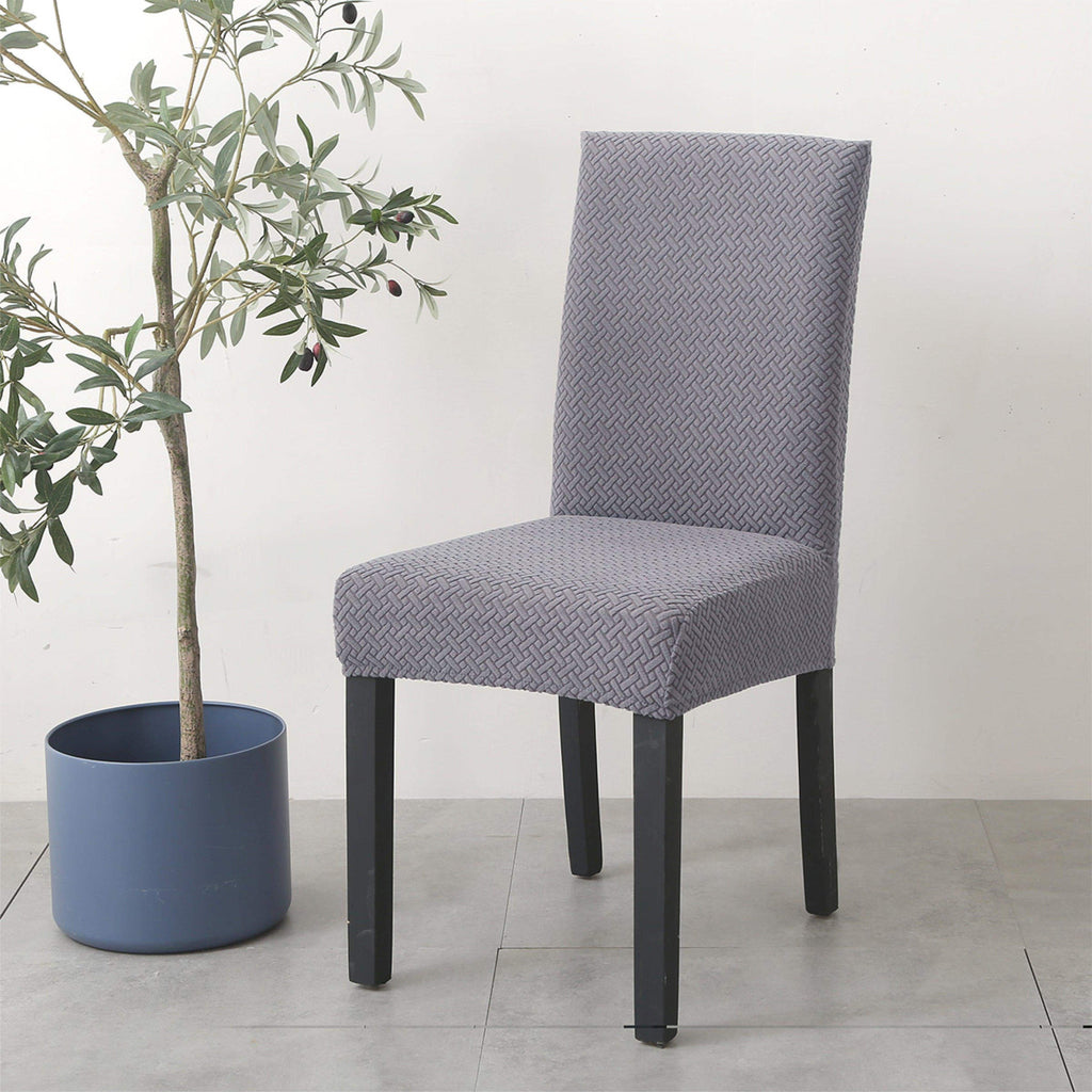 We craft these covers using a premium Jacquard knitting technique. Unlike thin, printed fabrics that look cheap and fade quickly, Jacquard involves weaving a textured pattern directly into the material. This raised texture adds visual interest and a soft, tactile finish. We blended the durable polyester yarn with high-quality elastane to create a "super-stretch" fabric. This elasticity allows the cover to mould to the shape of your chair, providing a tight, custom-upholstered look that won't sag or wrinkle and fitting standard and high-back chairs alike.