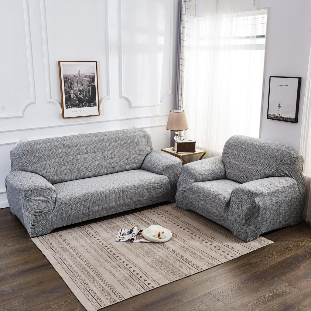 We manufacture these covers using a premium polyester-spandex blend, specifically engineered for high elasticity and resilience. Unlike rigid canvas throws that slip off constantly or look messy, our high-stretch fabric contours tightly to your furniture's silhouette. It fits most standard sofas—from compact two-seaters to generous three-seaters—seamlessly. The material moulds to the armrests, backrest, and cushions, creating a smooth, wrinkle-free appearance that mimics professional upholstery. The print quality ensures the grey pattern remains sharp and distinct, retaining its visual appeal even after multiple machine washes.