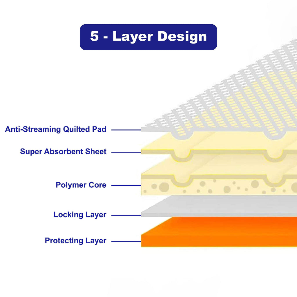 Super Absorbent SAP Core: Converts liquid into gel instantly to lock in moisture and prevent surface spreading.